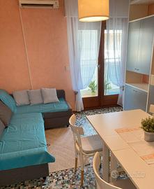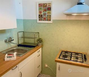 Comodo appartamento in zona tranquilla ma servita, con parcheggio gratuito. Si compone di una camera con un letto matrimoniale ed uno singolo, soggiorno con divano letto matrimoniale, disimpegno, cucina, bagno-wc e balcone.