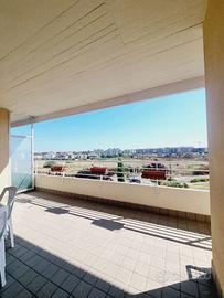 Composizione interna: ingresso su ampio salone a vista, luminoso e accogliente, con accesso diretto a un terrazzo vivibile, cucina abitabile, separata e funzionale, con accesso a un balcone comunicante con il terrazzo.