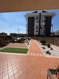 OPEN HOUSE VENERDI 14/04 dalle 17.00 alle 19.00 Appartamento di 114 Mq con ampio giardino e ingresso indipendente - costruzione 2017 In elegante palazzina di recente costruzione (2017), proponiamo in vendita splendido appartamento al piano terra di circa 114 mq, caratterizzato da ingresso indipendente e giardino privato di circa 400 mq, ideale per chi cerca comfort, privacy e spazi esterni vivibili. L'immobile si apre su una raffinata zona giorno composta da soggiorno luminoso con cucina a vista, con accesso diretto al meraviglioso giardino, in parte mattonato e in parte verde, perfetto per momenti di relax e convivialità all'aperto. Nella zona giorno troviamo inoltre un antibagno e un bagno finestrato con vasca. La zona notte è ben separata e comprende: ampia camera matrimoniale, due camerette e un secondo bagno finestrato con doccia. Tutti gli ambienti della casa hanno accesso diretto al giardino, rendendo gli spazi estremamente luminosi e funzionali. All'esterno troviamo una cucina attrezzata, collegata direttamente a quella interna, oltre a zona lavanderia e ripostiglio. Completa la proprietà l'accesso diretto all'abitazione di ben due passi carrabili, dove poter parcheggiare comodamente due auto all'interno del giardino. Dal punto di vista energetico, la proprietà è in classe energetica A ed è servita da pannelli fotovoltaici condominiali e pannelli solari, garantendo elevata efficienza e risparmio sui consumi. L'immobile si presenta in ottime condizioni ed è dotato di numerosi comfort, grate di sicurezza, zanzariere ,aria condizionata ,riscaldamento autonomo con caldaia a condensazione ,impianto elettrico di irrigazione e predisposizione antifurto. Spese condominiali: circa €30/mese, ridotte grazie all'indipendenza dell'immobile. Soluzione ideale per famiglie o per chi desidera vivere in un contesto recente senza rinunciare a spazio esterno e privacy. Contattaci oggi stesso per prenotare una visita e scoprire di persona tutto ci