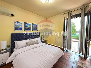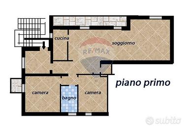 Labitazione è raggiungibile tramite scala esterna di proprietà e si apre su un pratico disimpegno che conduce alla zona giorno, composta da luminoso soggiorno con accesso sul balcone e cucinotto finestrato. Un secondo disimpegno porta alla zona notte, dove troviamo due ampie camere matrimoniali di cui una con uscita sul balcone, bagno con finestra e comodo ripostiglio.