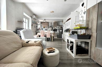 La casa si presenta in buone condizioni, già pronta da vivere, con infissi in PVC con vetrocamera, pavimentazione in laminato effetto legno in tutte le stanze, impianto di climatizzazione, riscaldamento autonomo e cucina a induzione. Al piano terra è presente una spaziosa area coperta per il deposito di bici e moto, la palazzina è dotata di doppio ingresso per una maggiore praticità e accessibilità, e all'esterno sono disponibili due posti auto condivisi tra le sei unità della palazzina.