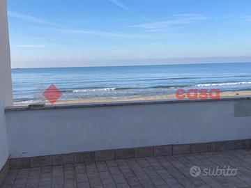 Marina di Ardea - appartamento fronte mare al primo piano S/A con entrata indipendente: soggiorno con angolo cottura, disimpegno, due camere e bagno con doccia. Terrazzo perimetrale di 50 mq con accesso dal soggiorno. L'immobile si trova di fronte alla fermata Cotral, linea Roma Laurentina/Nettuno, vicino a ristoranti, hotel, bar, pub e ai principali servizi, e a circa 4,5 km da banca, posta e farmacia. L'immobile verrà consegnato ristrutturato entro giugno 2026.