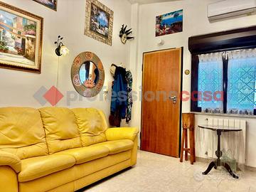 Tor San Lorenzo - Nuova California, Residence ''Le Palme'' - Appartamento in villa al 1°P.: soggiorno con angolo cottura, disimpegno, camera, bagno e terrazzo di 10 mq. Cucina di 10 mq, ripostiglio sotto scala e corte mattonata di 35 mq al piano terra. L'immobile si trova a 700 metri dai principali servizi, quali posta, farmacia, supermercati, dalla fermata Cotral linea F12645 (Roma Laurentina - Nettuno), e a 1,8 km dal mare.