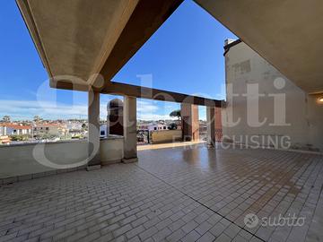 Il punto forte di questa proprietà è il terrazzo di 110 mq, ideale per godersi momenti di relax all'aria aperta. La posizione centrale offre la comodità di avere a portata di mano caffè, ristoranti, parcheggi e farmacie.