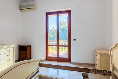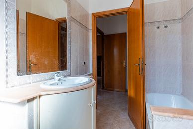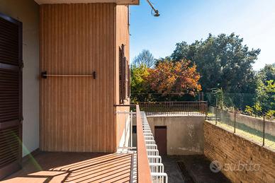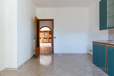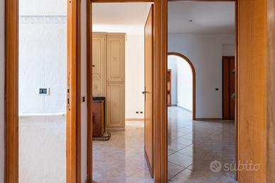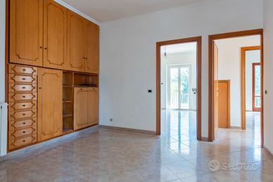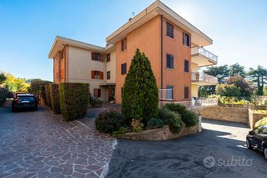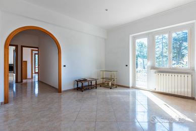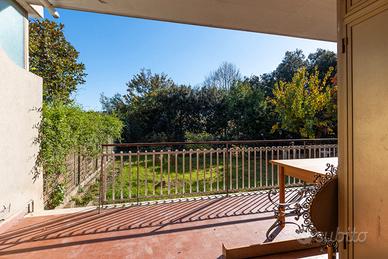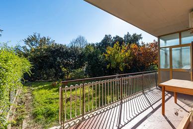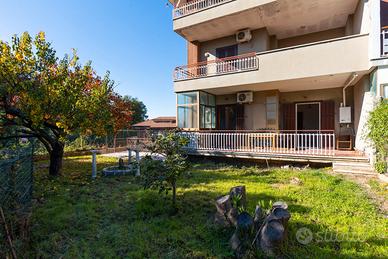 Ariccia - Appartamento al piano terra: ingresso, cucina con camino, sala, disimpegno, due camere matrimoniali e bagno. Balcone con accesso dalla sala, veranda di 16 mq, con accesso dalla cucina, con zona lavatoio, giardino angolare di circa 150 mq e cantina. L'appartamento dista circa 200 metri dall'ufficio postale, dal polo commerciale "Le Cerquette" e dall'Ospedale Spolverini.