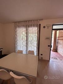 A pochi metri dal mare, comodo e rifinito appartamento completo di arredi, con ingresso indipendente e un cortile di 40 Mq. Si compone di un piano terra con Soggiorno, cucina abitabile, bagno, ripostiglio. Al piano seminterrato due camere da letto, bagno.