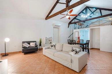 Cagliari Sulla centralissima via Manno, per referenziati, affittasi con disponibilità immediata, appartamento open space con affaccio panoramico, interamente arredato e con pregevoli elementi a vista. Ideale soluzione abitativa o uso studio per professionisti e per chiunque desideri un comodo punto di appoggio o pied-à-terre nel cuore della città . Al livello inferiore, grande zona giorno con cucina abitabile, angolo lavanderia, bagno con doccia. Ampio affaccio con due balconi sulla via Manno. Presente un secondo balcone sule adiacenti Scalette Monache Cappuccine, dalle quali si accede all'appartamento. Al piano soppalcato, la zona notte. Climatizzazione autonoma con split pompa di calore; frigo/freezer, porta blindata, lavatrice, Tv smart. Connessione internet già attiva e solo da trasferire a proprio nome. Canone di locazione mensile 750 euro. Utenze e tassa rifiuti non inclusi. Su richiesta, disponibilità di posto auto presso parcheggio pubblico multipiano a meno di dieci minuti di distanza a piedi. Durata minima del contratto, 1 anno. Non possiamo ospitare animali domestici. Non siamo interessati a subaffitto turistico o per brevi periodi.