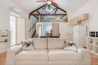 Cagliari Sulla centralissima via Manno, per referenziati, affittasi con disponibilità immediata, appartamento open space con affaccio panoramico, interamente arredato e con pregevoli elementi a vista. Ideale soluzione abitativa o uso studio per professionisti e per chiunque desideri un comodo punto di appoggio o pied-à-terre nel cuore della città . Al livello inferiore, grande zona giorno con cucina abitabile, angolo lavanderia, bagno con doccia. Ampio affaccio con due balconi sulla via Manno. Presente un secondo balcone sule adiacenti Scalette Monache Cappuccine, dalle quali si accede all'appartamento. Al piano soppalcato, la zona notte. Climatizzazione autonoma con split pompa di calore; frigo/freezer, porta blindata, lavatrice, Tv smart. Connessione internet già attiva e solo da trasferire a proprio nome. Canone di locazione mensile 750 euro. Utenze e tassa rifiuti non inclusi. Su richiesta, disponibilità di posto auto presso parcheggio pubblico multipiano a meno di dieci minuti di distanza a piedi. Durata minima del contratto, 1 anno. Non possiamo ospitare animali domestici. Non siamo interessati a subaffitto turistico o per brevi periodi.