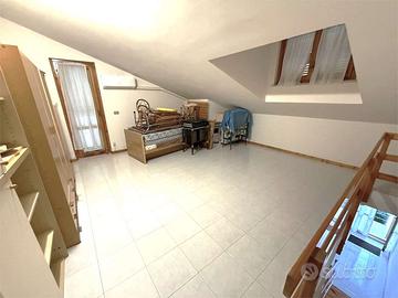 Tramite una comoda scala in legno si accede al piano superiore mansardato che gode di uscita su un secondo balcone, ideale come spazio aggiuntivo o zona relax.