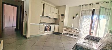 60mq composto da openspace salone con cucina, camera da letto matrimoniale,bagno con vasca, balcone completamente chiuso con vetrate scorrevoli abitabile anche in inverno.