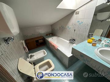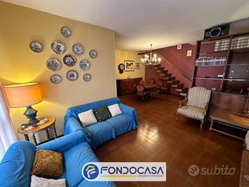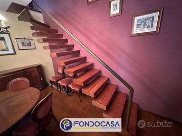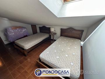 L'appartamento è composto da ampio soggiorno con camino, che rappresenta il cuore della casa, cucina abitabile e balcone. Nella zona notte troviamo due camere matrimoniali ed una singola, un bagno e il secondo balcone. Al piano superiore troviamo un soggiorno con accesso al terrazzo, zona lavanderia e una camera con bagno. I due piani sono collegati sia internamente che esternamente tramite scala condominiale quindi sono anche facilmente divisibili in due unità immobiliari separate.