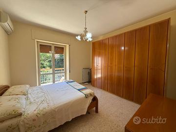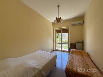 L'immobile, di 129 mq aree scoperte incluse + 13 di garage, si trova al primo piano di un palazzo di tre piani ed è attualmente libero, pronto per essere abitato. L'appartamento dispone di 7 locali, tra cui tre camere da letto con balcone e due bagni, ideale per una famiglia numerosa o per chi desidera avere spazio aggiuntivo per ospiti oppure per studio. Abbiamo ben due balconi, il primo importante e prende tutto il lato est della casa, mentre il secondo più piccolino in una delle camere matrimoniali. Completano l'immobile un comodo fondaco ed un garage.