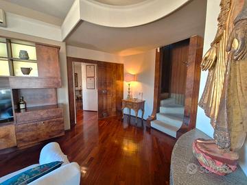 L'appartamento ha l'ingresso nel grande salone suddiviso in diverse zone quali area divani, pranzo, televisione ed il camino per serate indimenticabili immersi nelle luci della città e delle colline circostanti grazie alle grandi vetrate. La cucina abitabile con ingresso alla terrazza, 2 camere di cui una con cabina armadio, ripostiglio, servizio con finestra e vasca. Al piano superiore stanza ben finestrata con terrazzina con servizio corredato di doccia e finestra, lavanderia e soffitta. Termosingolo. Rif. a 10747 - CLASSE ENERGETICA G IPE 175 - ARKIMMOBILIARE tel. -