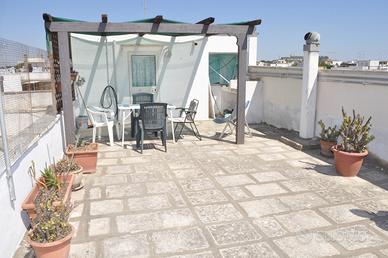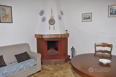 Vendo appartamento al primo piano (87mq) con ingresso autonomo, ampio soggiorno con caminetto, cucina con tavolo pranzo e piccolo balcone, camera da letto (con aria condizionata) e balcone, piccola cameretta ricavata su due lati con muro e 2 lati con tende di stoffa; bagno con vasca/doccia e 2 terrazze (66mq) di cui 1 più ampia con gazebo fisso in legno e angolo barbecue. E' presente anche un vano tecnico di 21mq.