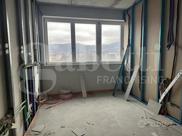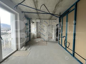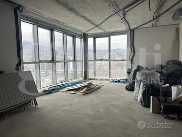 Appartamento in fabbricato di recentissima costruzione, prestigioso, modernissimo, panoramico e composto da un ingresso, un doppio salone con predisposizione angolo cottura a vista, vetrate in tutto il vano, bagno con lavanderia annessa, due camere di cui una con bagno interno ed una cameretta. Balconata Attualmente privo di pavimentazione e porte, da predisporre perché già disponibili i mareriali.