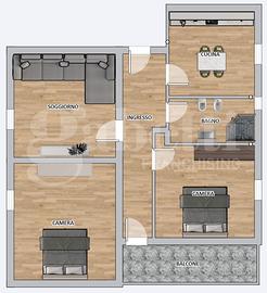 Rif. AZ25134 - In strada silenziosa a ridosso del centro cittadino proponiamo in vendita un appartamento ad uso abitativo posto al piano primo di un mini condominio. Il fabbricato si presenta in buone condizioni manutentive e beneficia del rifacimento in tempi recenti del tetto. Un grande giardino ad uso parcheggio valorizza il tutto. L'appartamento è composto da ingresso, soggiorno, cucina abitabile, 2 grandi camere da letto, bagno e balcone verandato. Internamente le condizioni sono buone con finiture tipiche degli anni '80 ma con impianti perfettamente funzionanti e serramenti dotati di vetrocamera. Davvero ottima è la distribuzione degli spazi interni: i reparti giorno e notte sono ben distinti e la zona giorno beneficia di una cucina di buone dimensioni. Al piano sottotetto è presente una piccola ma comoda soffitta ad uso cantina.