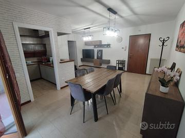 Vendesi appartamento bilocale per trasferimento. Semi open-space con grande soggiorno, nel 2024 è stato ristrutturato il bagno e imbiancato l'intero immobile. Cantina, doppio garage, balcone 7 m2 e ascensore. Condizionatore, cappotto e zanzariere. Si vende ammobiliato senza elettrodomestici. Zona centrale comoda in quanto vicino a supermercato, farmacia e vari servizi, tutto raggiungibile a piedi. Oltre al garage ci sono posti auto scoperti riservati ai residenti sotto la palazzina. Basse spese condominiali.