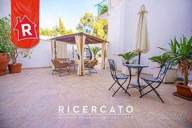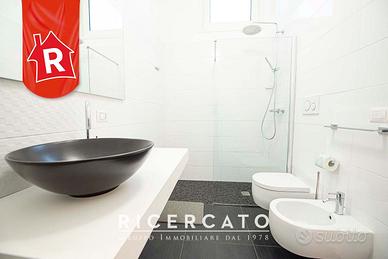 Allo stato attuale l'immobile è così composto: ingresso nella all, disimpegno che permette l'accesso a quattro ampie camere da letto ognuna con bagno in camera e due di queste hanno l'uscita esclusiva nel giardino retrostante di generosa metratura e finemente allestito, una vera a propria oasi di pace dove trascorrere le giornare estive.
