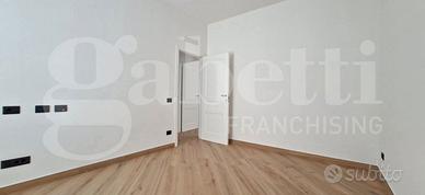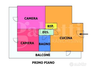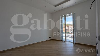 La soluzione, dal DESIGN MODERNO ED INNOVATIVO, è posta al primo piano all'interno di uno stabile in cemento armato di recente ristrutturazione composto da sole 5 unità abitative, ed è internamente così suddivisa: ingresso in ampio ambiente living con cucina a vista, disimpegno con accesso al servizio finestrato e al ripostiglio, camera da letto e cameretta.
