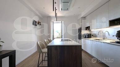 L'appartamento si estende su una superficie abitativa di circa 115 mq ben distribuiti, con ingresso in ampio salone living collegato in open space con una splendida cucina dallo stile moderno dotata di isola centrale e accesso diretto al terrazzino a livello di circa 20 mq attrezzato con zona lavanderia verandata.