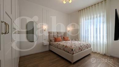 La zona notte è preceduta da un funzionale disimpegno centrale che distribuisce l'accesso ai vari ambienti: luminosa camera da letto matrimoniale con bagno privato, spaziosa camera da letto con zona verandata annessa, cameretta/studio anch'essa con accesso alla veranda ed ulteriore bagno finestrato caratterizzato da una raffinata vasca e specchio retroilluminato.