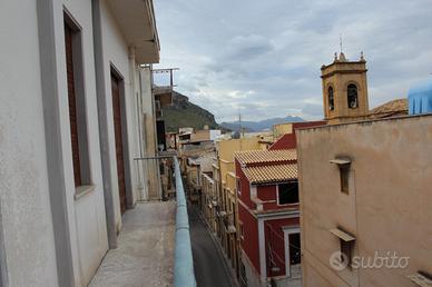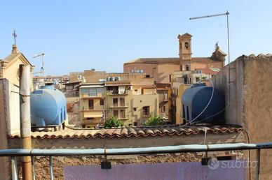Bagheria, nel centro storico adiacente a P.zza Anime Sante ed al centralissimo Corso Butera, in piccola palazzina vendesi luminoso appartamento posto al piano terzo di mq 87 comm.li con sovrastante locale deposito di mq 30 e complanare terrazzo panoramicissimo di mq 40 circa. L'unità al piano terzo è composta da ingresso su corridoio/disimpegno, due vani, soggiorno, cucinotto e wc bagno, tramite scala condominiale si accede al piano superiore composto da due ambienti oltre ripostiglio e terrazzo. Valida opportunità per uso abitativo o per uso investimento. Da ristrutturare.