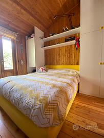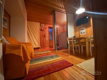 Posizione panoramica, davanti alle piste da sci raggiungibili a piedi, parcheggio auto coperto in garage, locale sauna, e ampia taverna con camino /barbecue ..