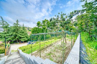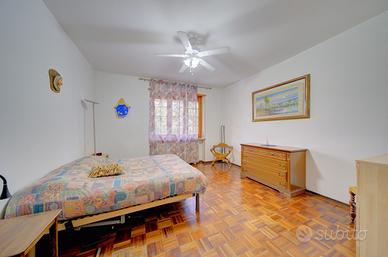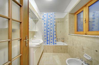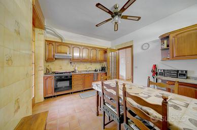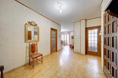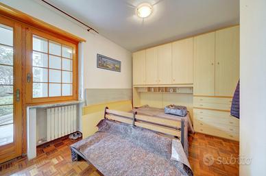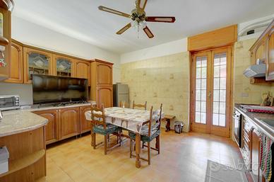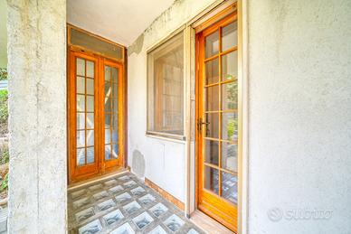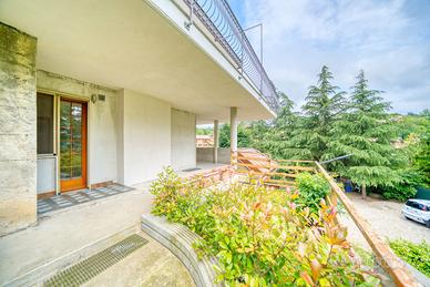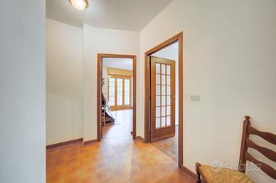 Luminoso appartamento in palazzina trifamiliare ben frazionata, con accesso indipendente, grande terrazzo coperto su tre lati e tre ampi giardini su tre livelli ben drenati. L'appartamento è composto di soggiorno contiguo a grande disimpegno ed a grande cucina, tre camere, due bagni, numerosi disimpegni, completano la proprietà un'intercapedine di servizio, due posti auto di proprietà ed un locale caldaia condiviso con impianto a condensazione ed accumulo di ultima generazione. Il soggiorno è facilmente trasformabile in un salone molto ampio abbattendo i tramezzi divisori con la cucina ed il disimpegno. L'interno dell'appartamento ha numerose predisposizioni per una migliore distribuzione ed una ottima ristrutturazione. E' presente anche un impianto di pannelli solari per acqua calda sanitaria.