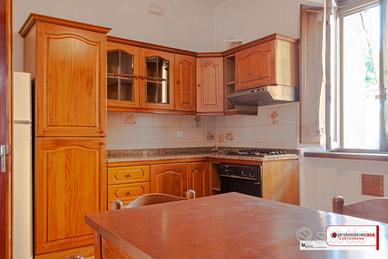 Entrando, il corridoio ci conduce in tutte le stanze della casa; la zona giorno è composta da un ampio soggiorno e da una cucina abitabile.