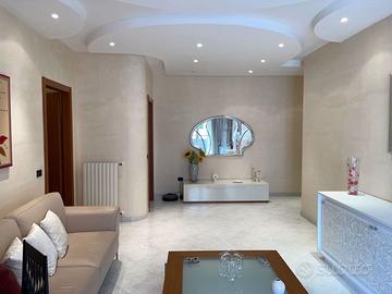 Costruzione anni 2000 circa, Stabile prestigioso Complesso City Center, appartamento posto al piano medio composto da: ingresso con soggiorno a vista con esposizione esterna su ampio balcone terrazzat o, ampia cucina con esposizione con balcone terrzzato interno completamente verandato, disimpegno zona notte, camera da letto con balcone esterno, camera da letto con balcone interno , ampio bagno padronale con anti bagno con vasca da bagno e bagno di servizio con piatto doccia, ripostiglio. Riscaldamento termoautonomo. Immobile con ottime rifiniture: porta blindata, controsoffittatura con faretti, pavimentazione gres porcellanato, infissi a taglio termico con doppia camera, porte in legno, due split ad aria condiz/ pompa di calore, tende da sole. Box auto al piano interrato di mq 17 circa. Quattro motivi per cui dover acquistare: - Stabile prestogioso ed elegante; - Esposizione doppia con ampi balconi terrazzati di mq 70 circa; - Luminosissimo; - Box auto di mq 17 c.a;