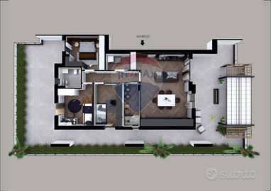 Appartamento al quarto piano attico composto da ampia zona living con cucina a vista e zona soggiorno-pranzo in ambiente unico , zona notte con camera da letto matrimoniale, camera da letto doppia, cameretta singola, bagno padronale e bagno di .servizio. Lalloggio ha affaccio su 3 lati su una spaziosa veranda.