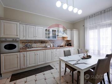 La cucina abitabile è un ambiente che sa di casa, grazie alla cucina in stile vintage e al balcone con affaccio su Corso Mazzini, che regala luce naturale e un piacevole scorcio sulla città.