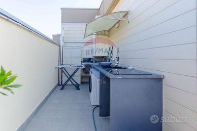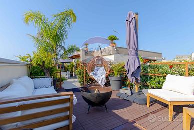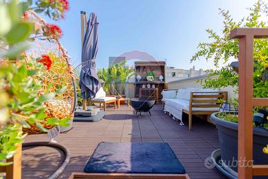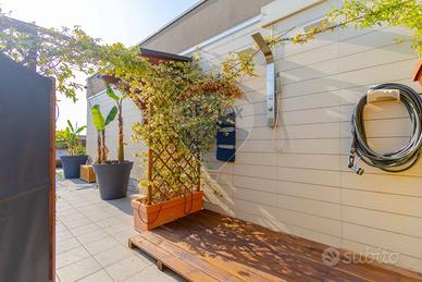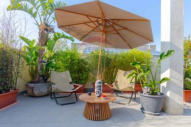 Il grande terrazzo, vero protagonista di questa casa, è un giardino sospeso sulla città. Uno spazio unico, ideale per colazioni all'aperto, serate con amici, momenti di relax o piccoli eventi. Un'oasi privata di luce e verde, da vivere in ogni stagione.