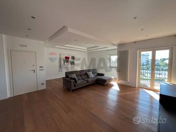 Elemento distintivo è il balcone esterno di circa 16 mq, rifinito con pavimentazione in legno sollevato stile barca: uno spazio esclusivo dove rilassarsi, cenare allaperto o semplicemente godere di un affaccio moderno e arioso.