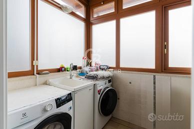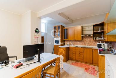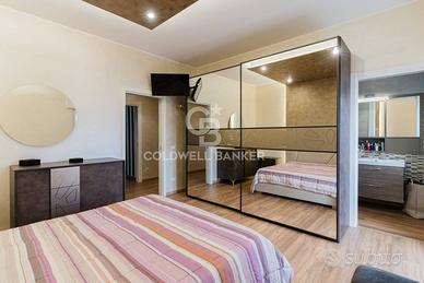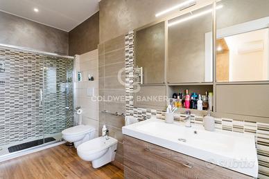 Il piano terra accoglie i residenti con una zona giorno di grande respiro, dove il soggiorno e la spaziosa cucina abitabile diventano il cuore pulsante della casa, perfetti per momenti di convivialità e per la gestione della routine familiare. La vera gemma di questo livello è l'ampio balcone terrazzato, uno spazio esterno profondo e vivibile ideale per cene all'aperto o per creare un angolo verde privato nel cuore della città. La luminosità naturale è garantita dalla straordinaria tripla esposizione dell'immobile sui lati nord, ovest ed est, che assicura una luce costante durante tutto l'arco della giornata. La zona notte di questo livello è composta da due camere da letto matrimoniali, di cui una servita da un bagno in camera per la massima riservatezza, e una confortevole camera singola. Abbiamo poi un secondo bagno padronale, un ripostiglio e un funzionale vano lavanderia.