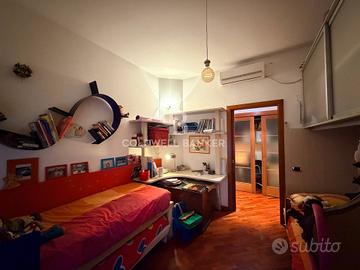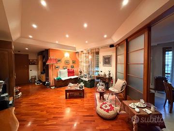 L'ingresso dell'abitazione apre su un ampio salone di rappresentanza, un ambiente spazioso e luminoso che costituisce il vero cuore della casa, ideale per accogliere ospiti in un'atmosfera di sobria eleganza. La zona giorno è sapientemente completata da una cucina abitabile, capiente e funzionale, e da un primo bagno di servizio, dettaglio che aggiunge estrema praticità alla gestione quotidiana della casa. La distribuzione degli spazi è stata concepita con grande razionalità, separando nettamente l'area della convivialità dalla zona notte, garantendo così la massima riservatezza e una vivibilità d'eccellenza. Quest'ultima sezione della casa ospita due camere da letto dalle metrature generose, capaci di adattarsi a diverse configurazioni d'arredo, e un secondo bagno padronale rifinito con cura, creando un ambiente intimo e rigenerante per il riposo.