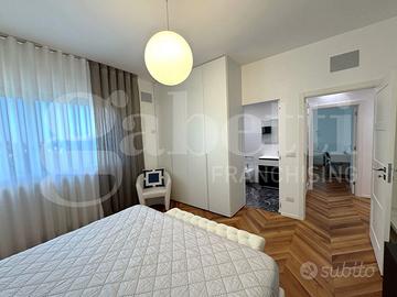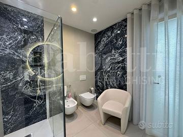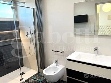 La zona notte è composta da due camere da letto spaziose, una delle quali dotata di bagno privato per un maggiore comfort e privacy, oltre dal bagno padronale. Entrambi i bagni sono arredati con materiali di pregio, progettati per garantire il massimo del benessere.