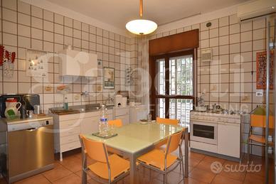 E' facile vedere il potenziale della casa: la grande dimensione (mq. 140 ca.), la distribuzione degli ambienti priva di spazi inutili, i numerosi affacci, la presenza di due ampi balconi, la signorilità del complesso con due campi da tennis, il campo da basket e un piccolo parco giochi. Siamo in Via Schuman nella zona San Pasquale.