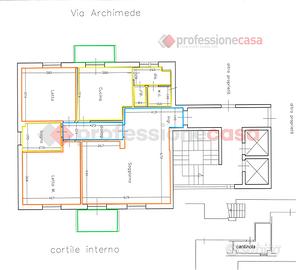 1° camera da letto affaccio con finestra in via Archimede; Bagno con Vasca; 2° camera da Letto Matrimoniale con affaccio con finestra su via Caldarola;