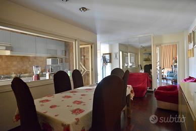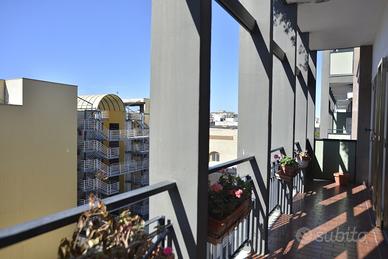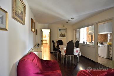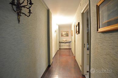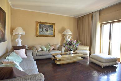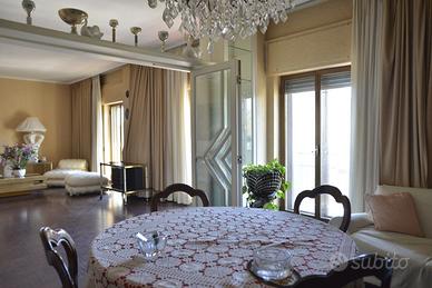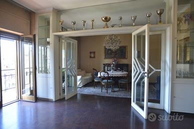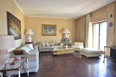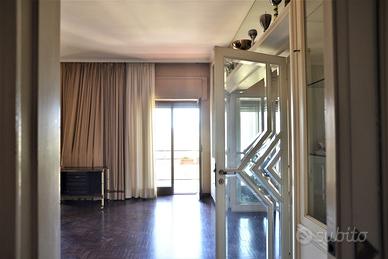 Un appartamento signorile, ampio (mq. 145 ca.), dal taglio elegante, in uno stabile degli anni '60 ben abitato. E' posto a piano alto, ed è molto luminoso ed arioso. Affacciandosi dal bel balcone esterno, la vista spazia dai giardini di Piazza Garibaldi, alla Chiesa di San Francesco, e sovrasta i tetti degli stabili circostanti. Lo spazio è ben diviso tra zona giorno e zona notte. Entrando l'ingresso, comodo, ci conduce nel salone triplo, diviso, grazie ad una bella porta a vetri, in un grande salotto ed in una sala pranzo di rappresentanza. I tre affacci sul bel balcone esterno garantiscono grande luminosità. La zona giorno è completata dal soggiorno/pranzo, separato, grazie ad un'altra struttura in vetro e legno, dalla cucina a vista. La zona notte ha tre camere da letto, una matrimoniale e due leggermente più piccole, e due grandi bagni, entrambi con finestra.