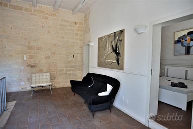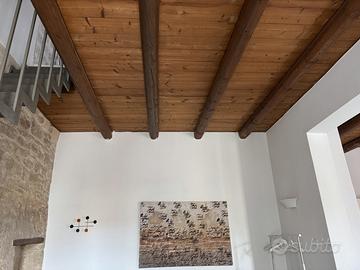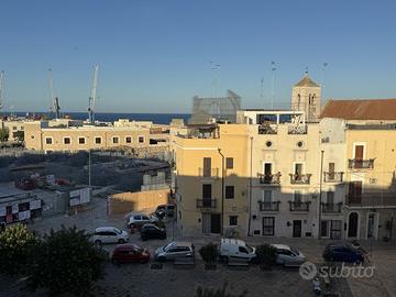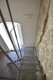 La scala in pietra è caratterizzata da un bassorilievo raffigurante il Santo patrono della città, San Nicola. Al primo piano ci sorprende la luminosità del salotto, con le volte alte mt. 3,70, con il soffitto in travi di legno e l'affaccio sulla piazza con il mare all'orizzonte; la camera da letto, affacciata sulla piazza, è comoda ed ampia. Il bagno è molto confortevole con una bella doccia.