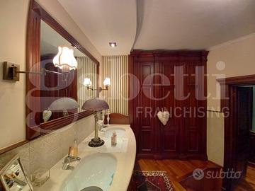 La zona notte comprende una spaziosa camera matrimoniale dotata di bagno privato con una vasca idromassaggio Jacuzzi biposto e cabina armadio, una cameretta e un secondo bagno.
