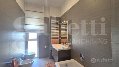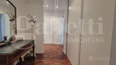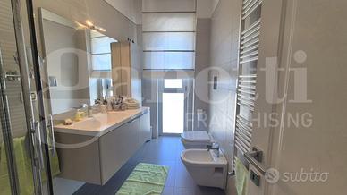 L'ingresso dell'abitazione, servito da due porte indipendenti, apre su una zona giorno ariosa e funzionale, dove troviamo un ampio salone doppio, una spaziosa cucina abitabile con annessa zona lavanderia e ripostiglio, disimpegno con comoda cabina armadio e camera/studio.