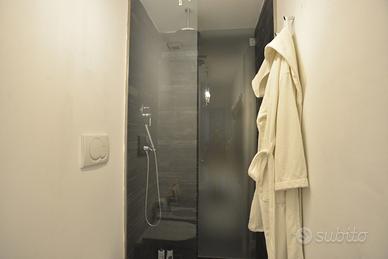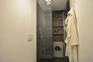 Un'elegante scala in metallo ci conduce alla zona notte, posta sul soppalco. Il bagno è funzionale e comodo e racchiude, sapientemente nascosta, la zona lavanderia.