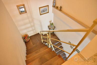L'appartamento è molto arioso e luminoso grazie agli affacci sul verde della piazza. La casa, di mq. 110 ca., ha due ingressi e si sviluppa su due piani che hanno accesso indipendente dai pianerottoli condominiali e sono collegati internamente da una comoda scala di metallo e legno.
