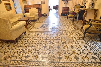 E' ampio (mq. 200 ca.), ha le volte alte mt. 5,50 ca., riccamente affrescate, i pavimenti con mosaici realizzati con grande maestria