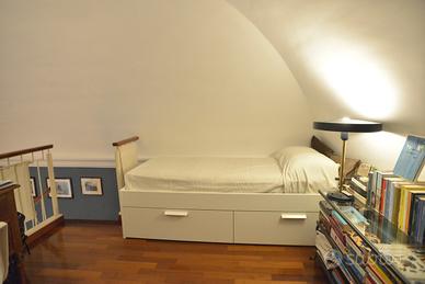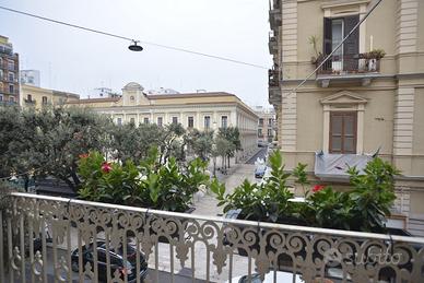 Con affaccio su Piazza Risorgimento, in Via Manzoni all'altezza di via Putignani. L'appartamento è luminoso, comodo (mq. 95 ca.), con le volte alte mt. 4,50 ca.. Lo spazio è diviso in un bell'ingresso che funge da fulcro dividendo armonicamente la casa. Il salotto è molto accogliente ed arioso ed è affacciato su un balcone prospiciente Piazza Risorgimento; il soggiorno pranzo è uno spazio aperto che ci conduce nella piacevole cucina abitabile, arredata; le camere da letto sono due, di cui una affacciata su piazza Risorgimento e l'altra sul soppalco; anche lo studiolo è posto sul soppalco; Il bagno è ampio e la lavanderia è funzionale. La casa è molto accogliente; la cura nella ristrutturazione e la qualità dei materiali impiegati, trasmettono un'innegabile sensazione di raffinata tranquillità. La porta è blindata; gli infissi sono in alluminio con doppio vetro; il pavimento è in parquet in alcuni ambienti,ed in altri in ceramica; le scale che ci conducono sui soppalchi sono in legno di ottima fattura; il riscaldamento è autonomo; gli ambienti sono climatizzati.