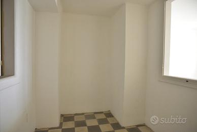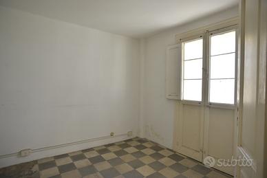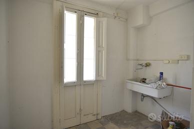 L'appartamento, posto al primo piano ammezzato, in categoria catastale A/4, è di mq. 80 ca., ha le volte alte mt. 2,50, e i pavimenti sono le originarie cementine d'epoca. E' caratterizzato dalla struttura tipica dell'epoca di costruzione e lo spazio è diviso dall'ingresso in 2 ambienti con affaccio con un bel balcone sul verde del giardino interno; 1 camera con luce indiretta; 1 camera con una finestra nel vano scale ed il piccolo bagno con finestra. L'immobile è da ristrutturare