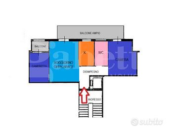 L'appartamento è posto al secondo piano, la disposizione interna è lineare e permette di avere ambienti luminosi e arieggiati.