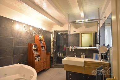 La camera da letto padronale, con le volte alte mt, 5,00 ca,, è ben disimpegnata tramite un gioco di armadi. Il bagno è ampio, ha doccia e vasca, ed ha finestra.